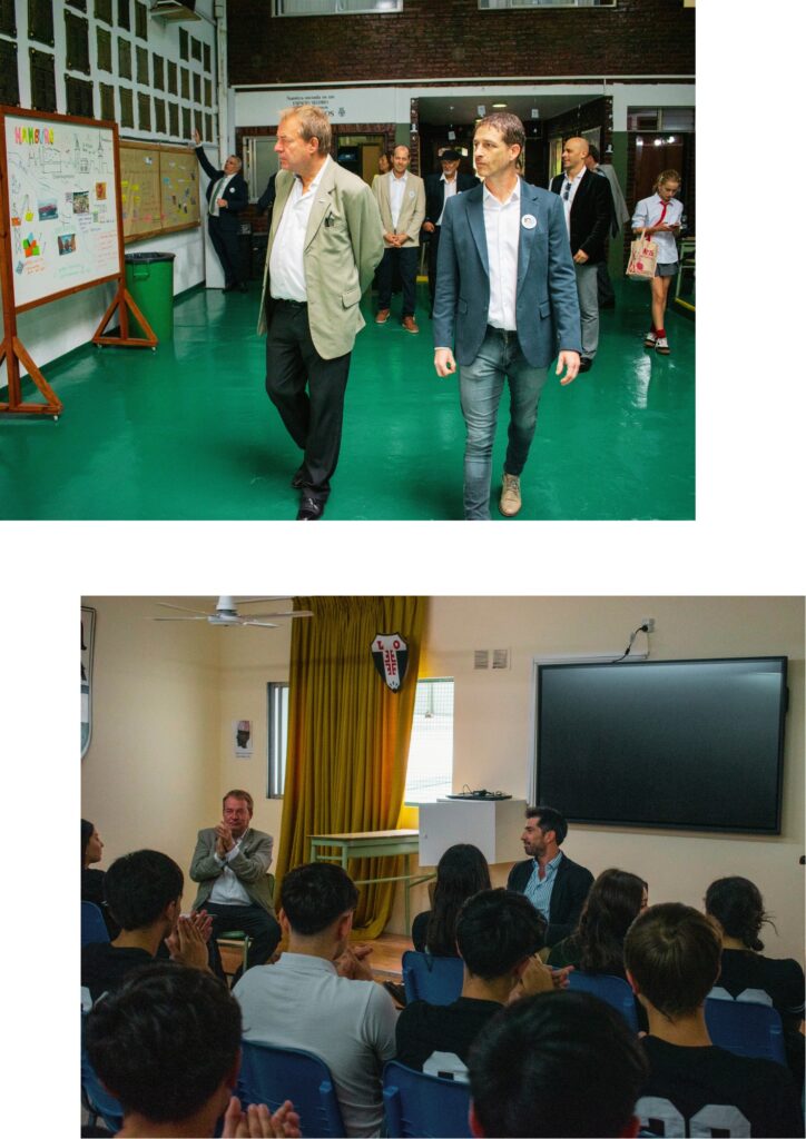 Durante su visita, el Embajador recorrió el club y los tres niveles del colegio, acompañado por la Comisión Directiva de @sedaloargentina. En este marco, fue recibido con cálidas palabras de bienvenida y agradecimiento por parte de Juan Manuel Olivieri, profesor y coordinador del Departamento de Alemán del Nivel Primario, y Orlando Rockstroh, Presidente de la Comisión Directiva.